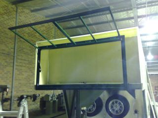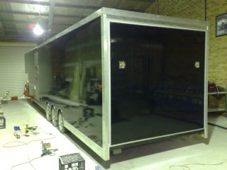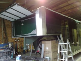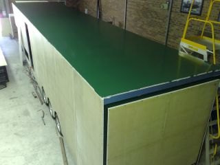 Below are pictures of an 11 mtr racecar transporter built by Peter Wing from Canberra, sides and roof are one piece 11mtr long 25mm core with 2mm fibreglass skins.